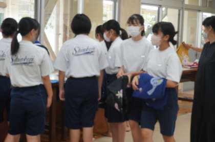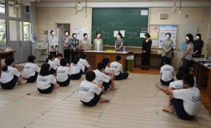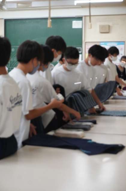 写真は、地域の方が用意してくださったゆかたと帯を選んでいるところです。