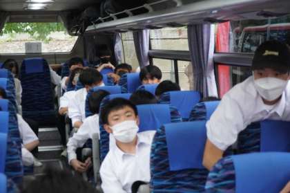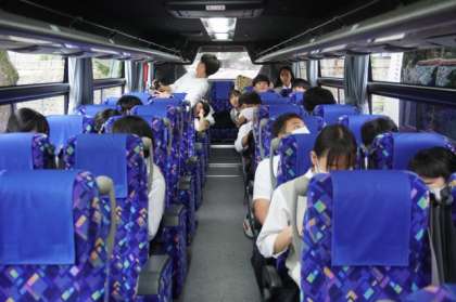 バスに乗って、法隆寺に向かいます。