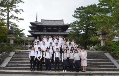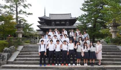 法隆寺でクラス写真撮影