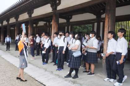 バスガイドさんが「五重塔」について、説明をしてくださっています。