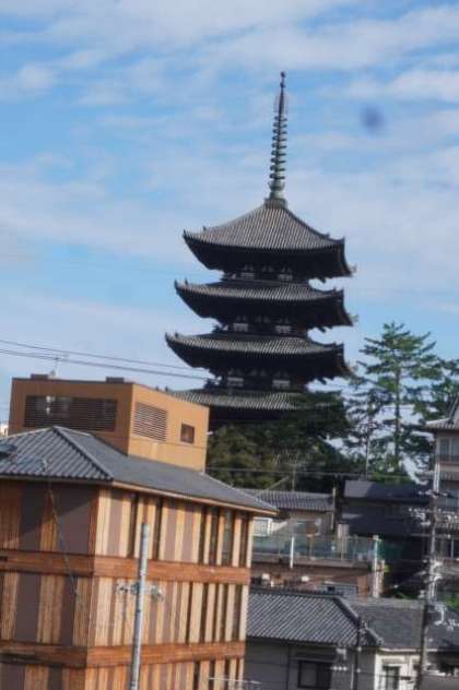 写真は飛鳥荘からの景色。興福寺の五重塔が見えます。