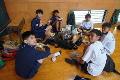 宿舎班に別れて、ランチタイムです。