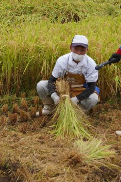 刈った稲のまとめ方も教えていただきました。