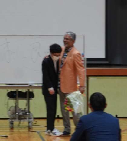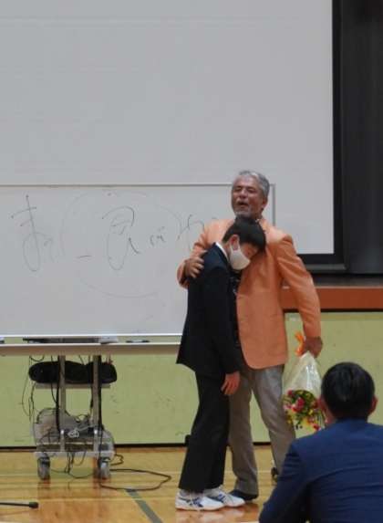生徒代表の生徒がお礼の言葉を伝えると、ハグしてくれました。