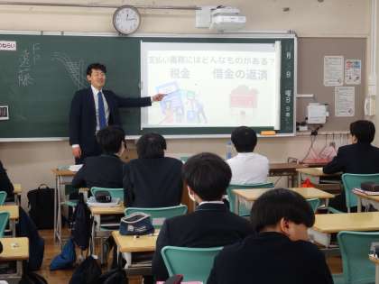 ファイナンシャルプランナーの遠藤さんを講師にお招きし、3年生の社会科で金融教育を実施しました。