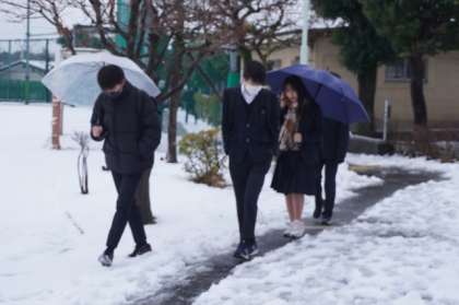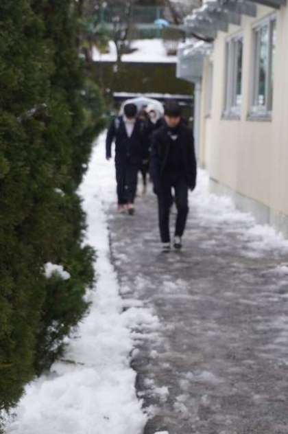 車両門から昇降口まで、歩きやすいように雪かきをしてくれたのは先生方です。