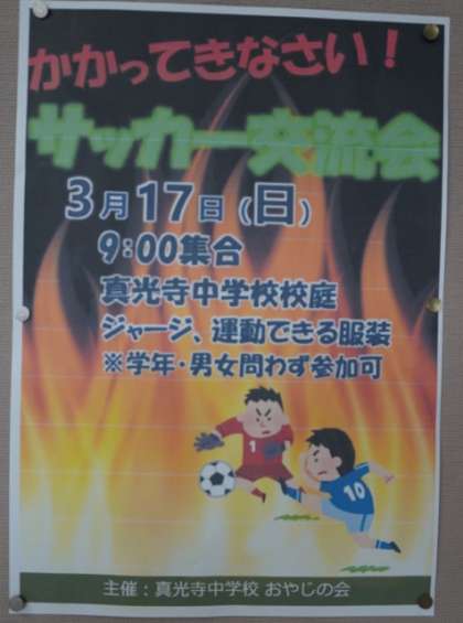 オヤジの会主催「サッカー大会」が3月17日に行われます。