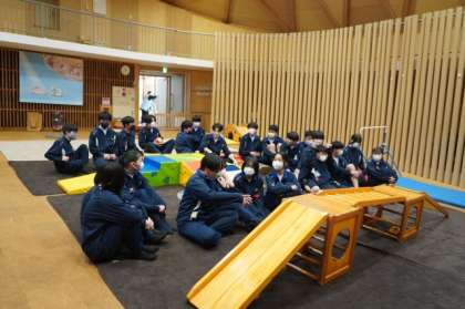 約1時間の実習後、ホールに集合し、主任の先生と園長先生からお話をしていただきました。
