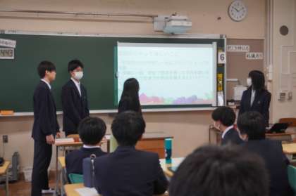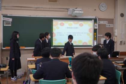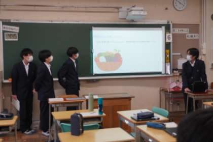 「めざせ、野菜350g」のクラス発表会が行われました。