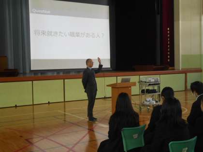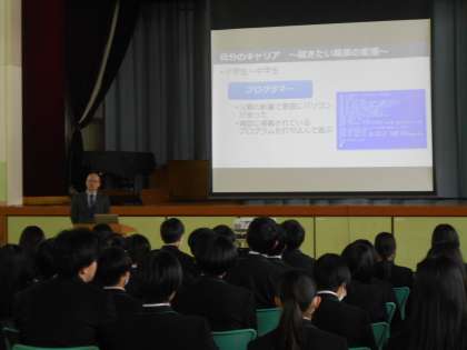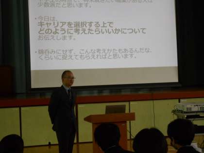 「おやじの会」の会長から、卒業する3年生に向けて、これからに人生設計についてお話をしていただきました。