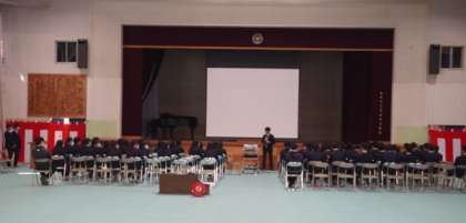 中学校最後の学年集会でした。