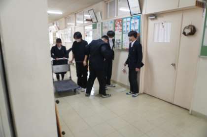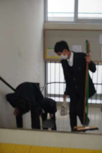 1年生は廊下と階段の清掃です。
