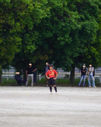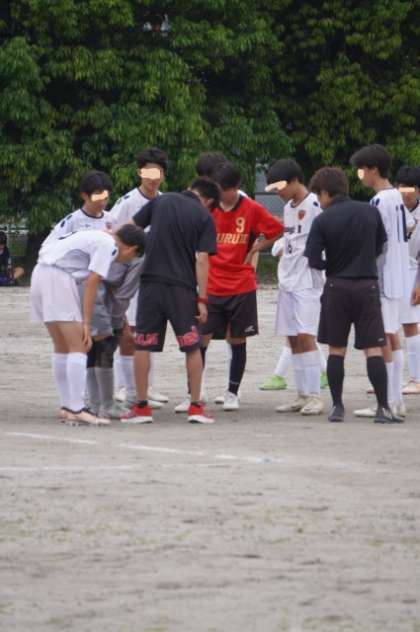 シュートするときに、キーパーと接触したようで、相手キーパーが、なかなか起き上がれなかったので、謝りに行ったところです。