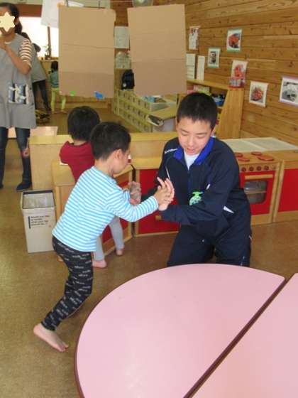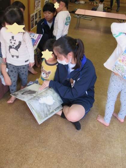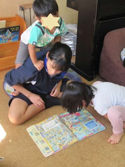 絵本を一緒に読んでいます。