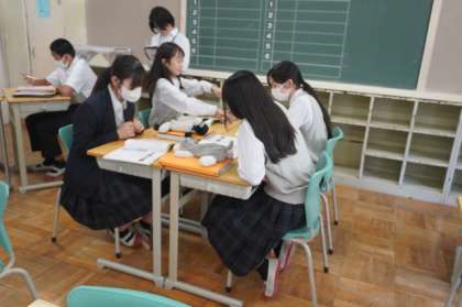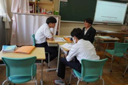 ニュー・ラボの練習をしてから、グループで、役になりきってリーディングの練習です。