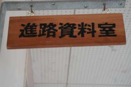 進路資料室 → 2階です。上級学校に関する資料が置いてあります。いつでも閲覧できます。