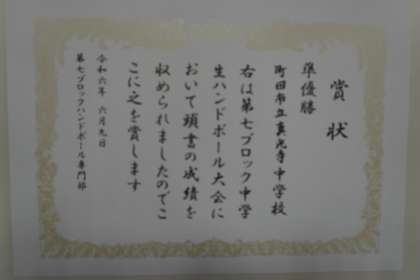 第7ブロック中学生ハンドボール大会 準優勝