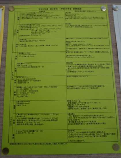 2年生の期末考査試験範囲です。