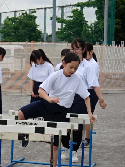 横向きでハードルをまたぎます。