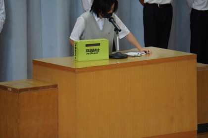 写真上・中:放送委員会・今日は「おまわりさん」の日です。