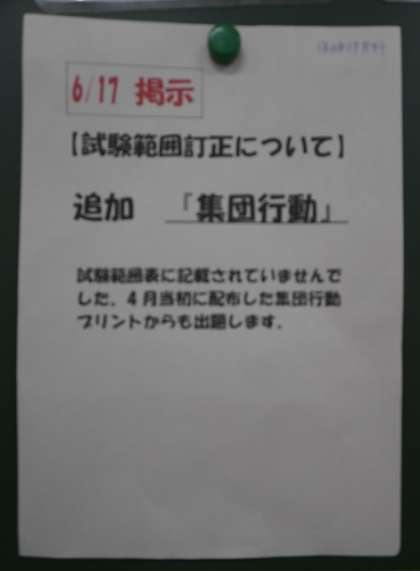 期末考査 2年生の保健体育の試験範囲が追加になりました。