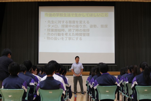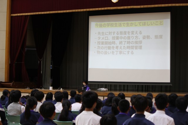ブリティッシュヒルズでの移動教室が終わってから、初めての全体集会を行いました。