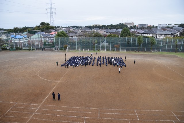 地震を想定して、校庭に避難をしました。理科の教員から地震について話をしました。