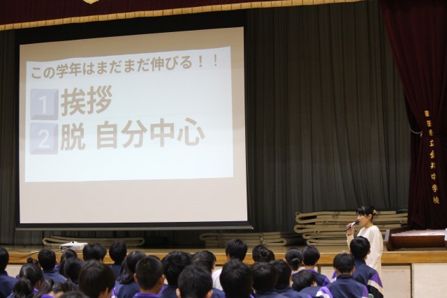 これまでの3年生が築いてきた良い伝統を受け継ぎつつ、1年生の手本として、学校生活の充実と向上を目指し、