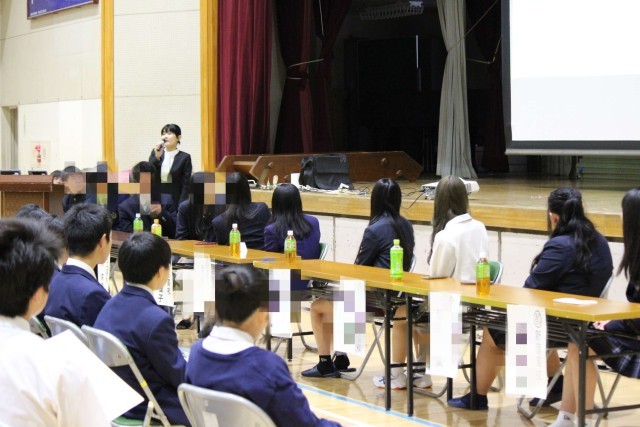本日は、来年度受験を控えてる2年生に向けて、金井中の卒業生が来校し、