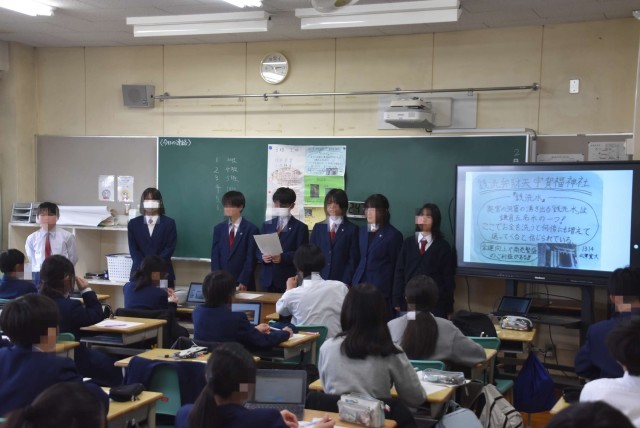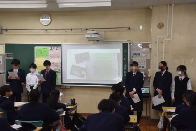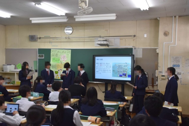 1年生が各クラスで鎌倉校外学習の事後学習の発表会を行いました。