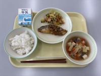 今日の給食のメニューは、ごはん、牛乳、かますの南蛮漬け、町田産キャベツのツナ和え...