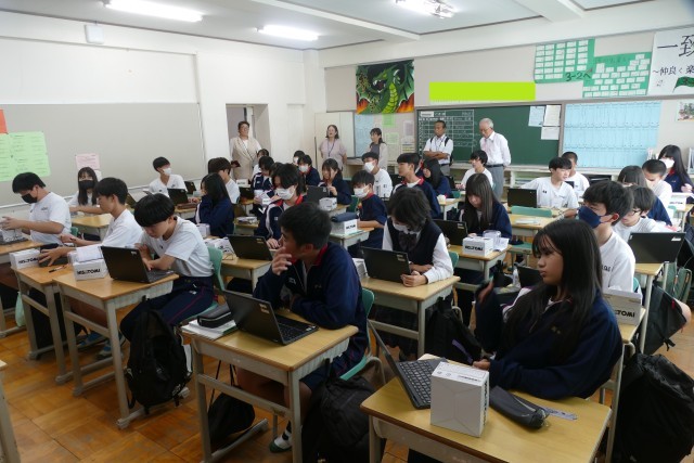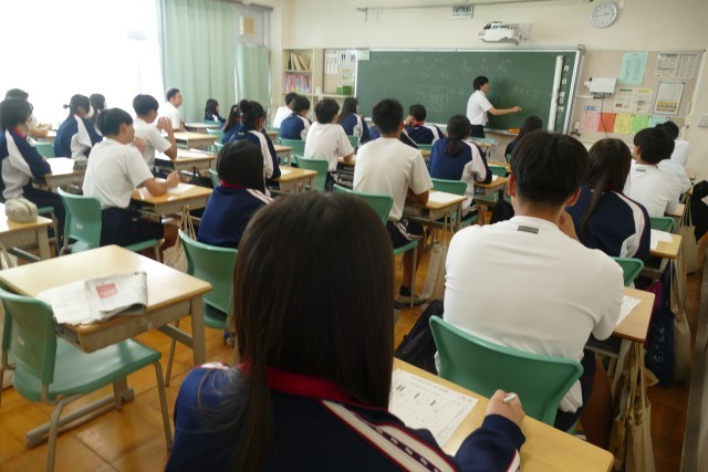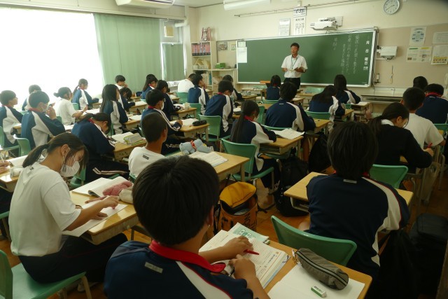 9月25日(木)6校時に、学校運営協議会委員のみなさんが3年生の授業を視察しました。委員のみなさんからは、「どの授業も、とても落ち着いています。体育の授業では、男女仲良く取り組んでいて、クラスの雰囲気がとても良いです。」などの意見をいただきました。