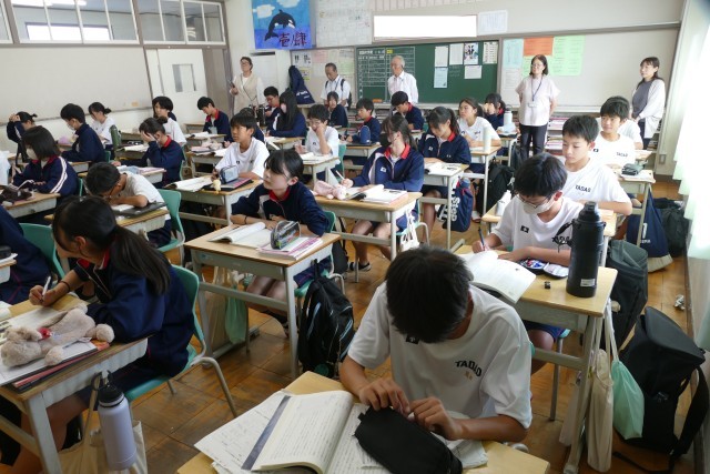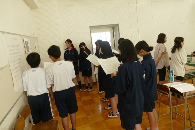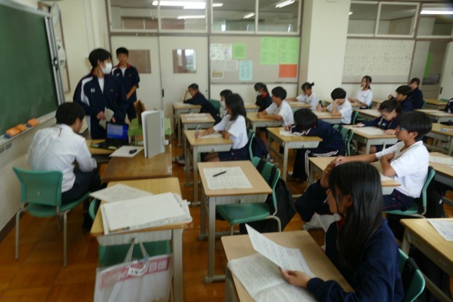 9月25日(木)6校時に、学校運営協議会委員のみなさんが1年生の授業を視察しました。委員のみなさんからは、「どの授業も、とても落ち着いています。音楽の授業では、合唱コンクールに向けてパートごとに取り組んでいて、クラスの雰囲気がとても良いです。」などの意見をいただきました。
