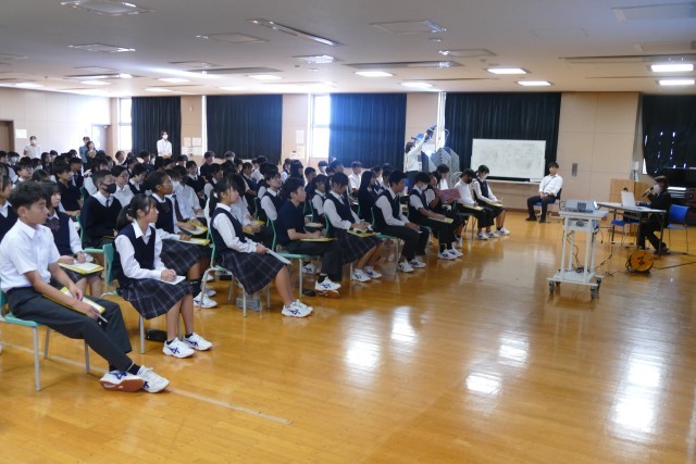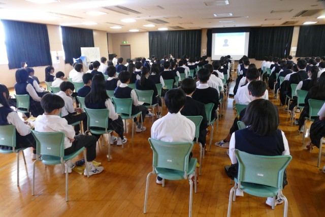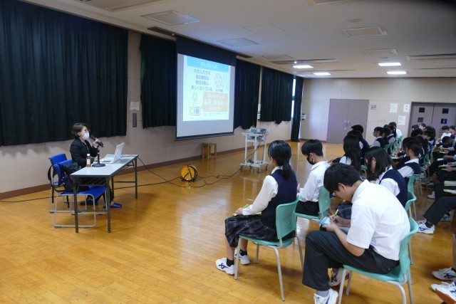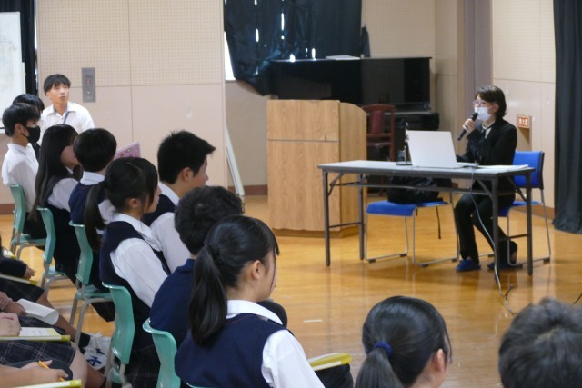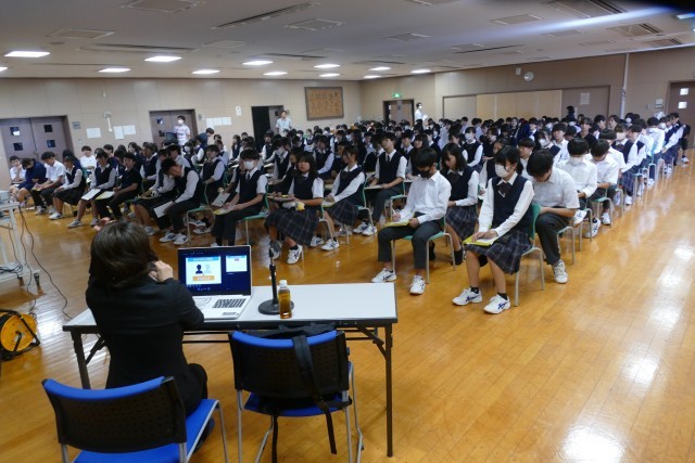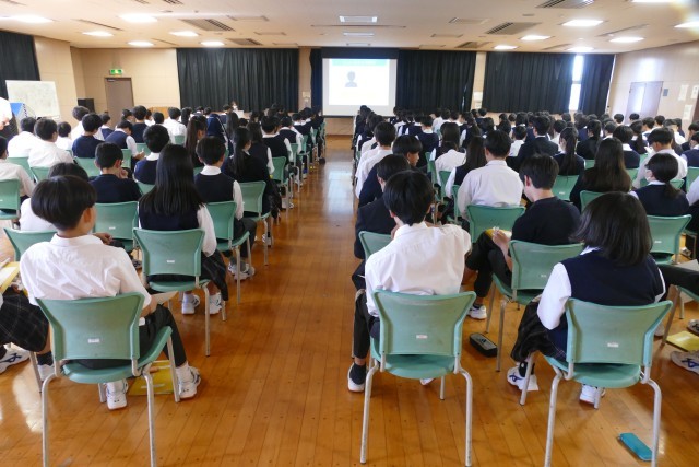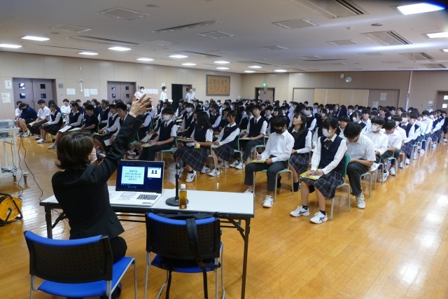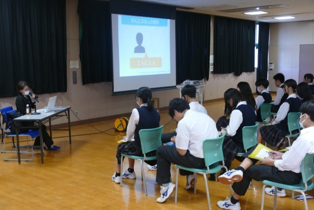 10月2日(木)5校時に多目的室で2年生のみなさんが、がん教育講演会に参加しました。講師は日本医科大学多摩永山病院の松本由美子先生です。2年生のみなさんは、松本由美子先生のお話を真剣に聞いていました。松本由美子先生、ご講演、ありがとうございました。