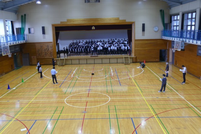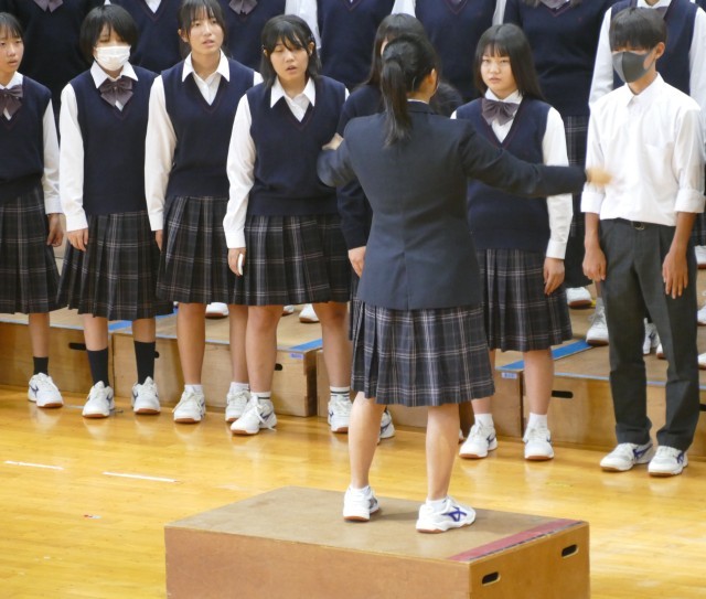 合唱コンクールの練習が始まりました。6校時にアリーナで、2年生のみなさんが学年合唱の練習をしていました。頑張ってください。応援しています。