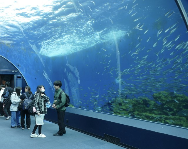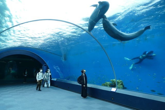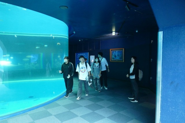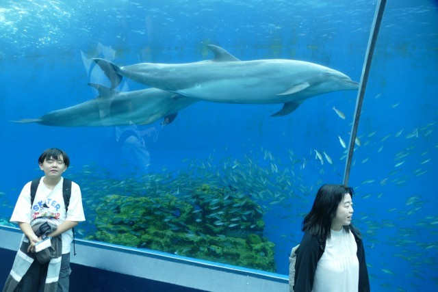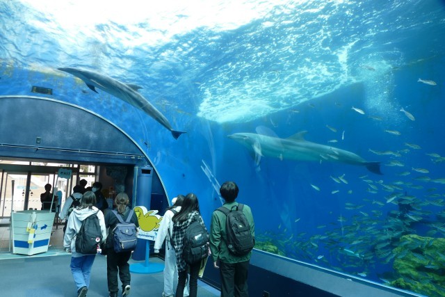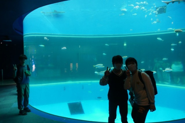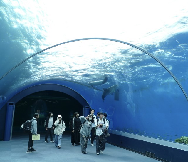 八景島シーパラダイスの水族館に入場しました。イルカたちの出迎えに、生徒のみなさんはとても喜んでいました♪
