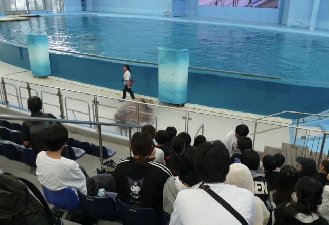 生徒のみなさんは、午前11時からライブスタジアムでanima life lave!を鑑賞しました。セイウチや白イルカ、ペンギン、バンドウイルカたちが、素晴らしい演技を見せてくれました。