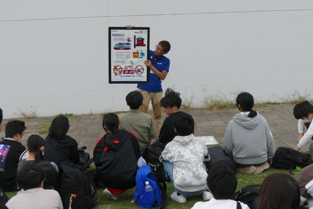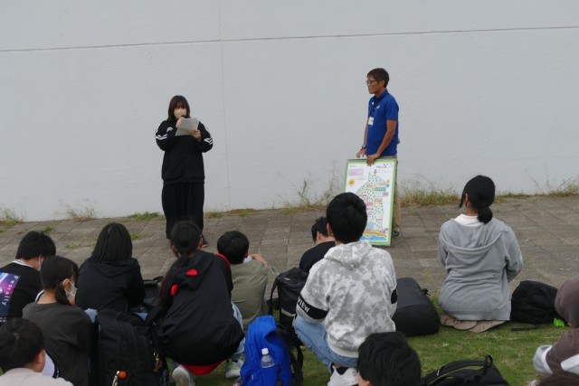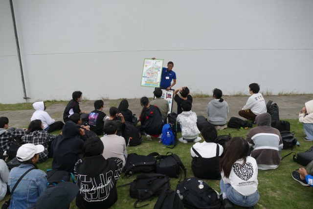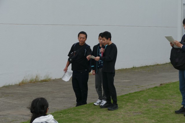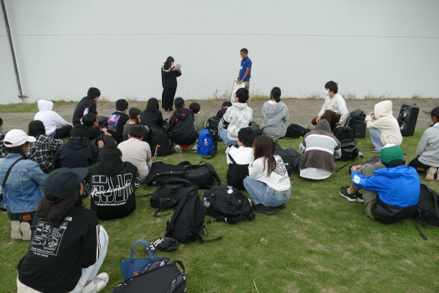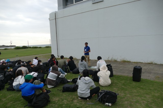 生徒のみなさんが乗ったバスが、午後4時15分に三浦YMCAエコ・ビレッジに到着しました。その後、芝生の広場で入所式を行いました。三浦YMCAの職員さんからは、避難経路やベットメイク、安全上の注意などのお話しがありました。一晩お世話になります。よろしくお願いします。