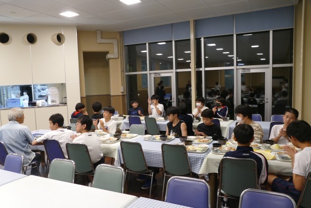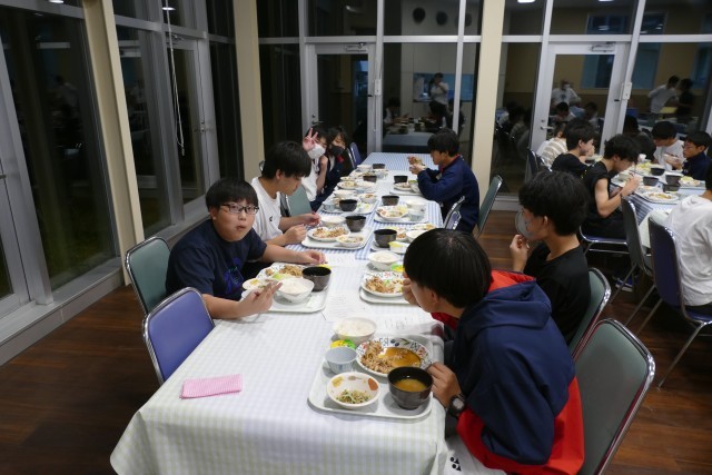夕食のメニューは、生姜焼きです。生徒のみなさんは、モリモリ食べています。とても美味しかったです。ご馳走様でした。