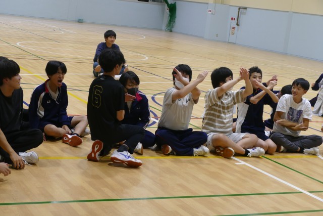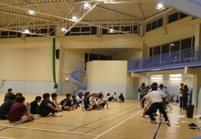 午後7時から多目的ホールでレクリエーションを行いました。レクリエーション係のみなさんが、とても楽しいゲームを企画してくれました。大いに盛り上がって、終了時間を少しこえてしまいましたが、とっても楽しかったです。みんなの明るい笑顔が輝いてました。
