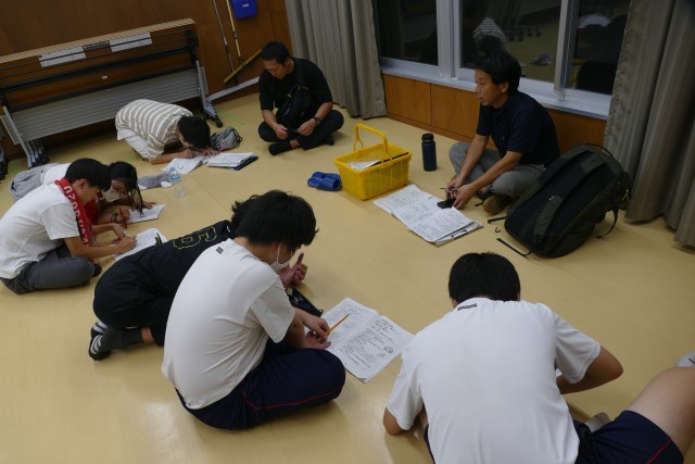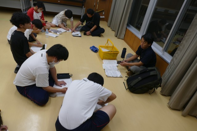 午後8時から、研修室で班長会議を行いました。今日の反省や、明日の予定について確認しました。班長のみなさんは、とても良い意見を言っています。この後、お部屋に戻って、部屋会議を行なって、お部屋のお友達に伝えます。明日も、充実した良い日になる事を願っています。海の波が穏やかになると良いなと祈っています。