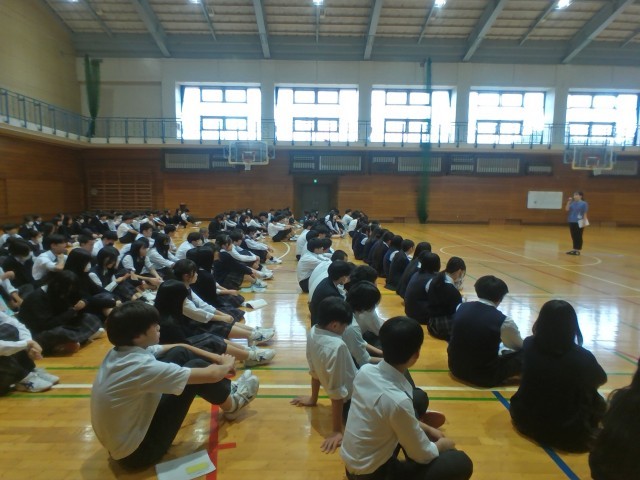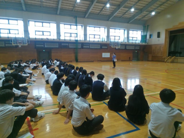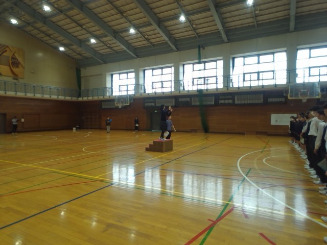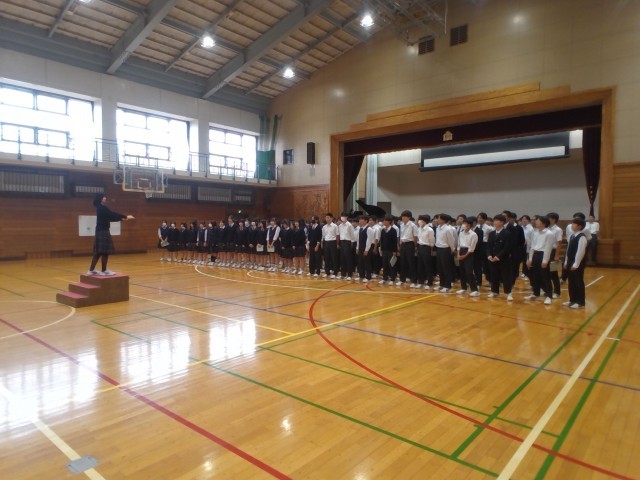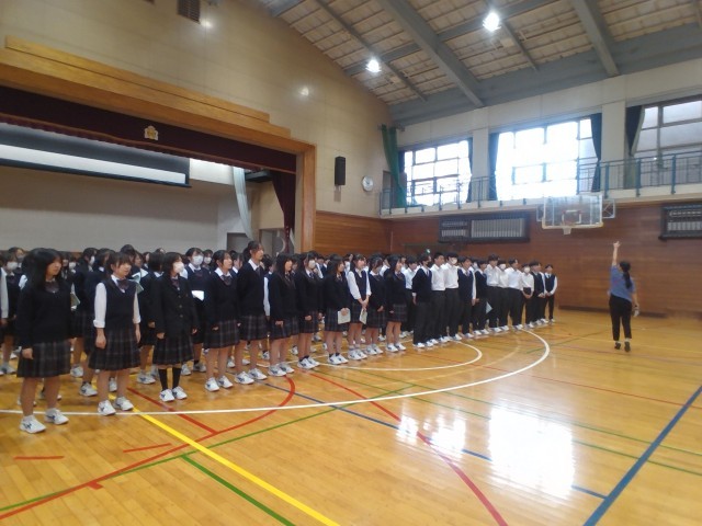 6校時にアリーナで学年練習がありました。今回は学年合唱曲『友〜旅立ちの時〜』を練習しました。