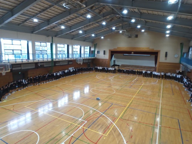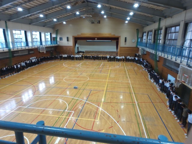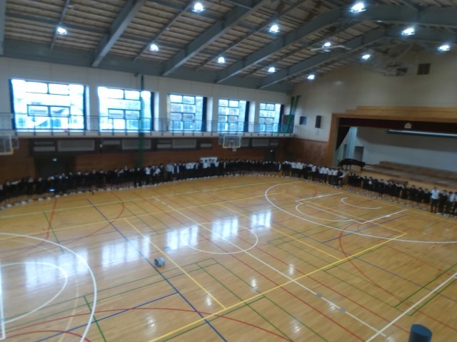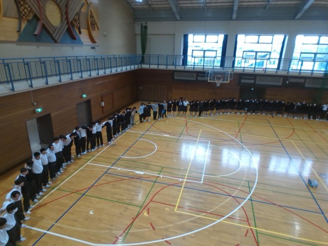 5時間目の最後の学年練習後に、学年全員で円陣を組んで気持ちを高めました。