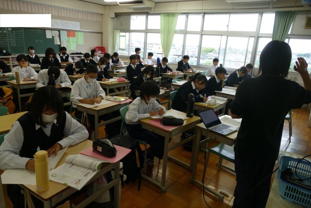 10月27日(月)の1年生の授業の様子です。大きな行事である合唱コンクールが終わっても、1年生のみなさんは、しっかりと先生の話を聞いて、集中して授業に取り組んでいます。素晴らしいです。