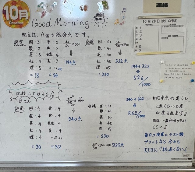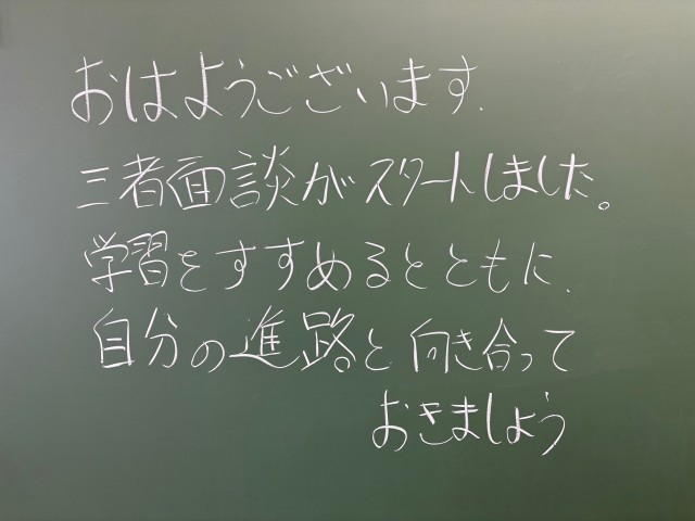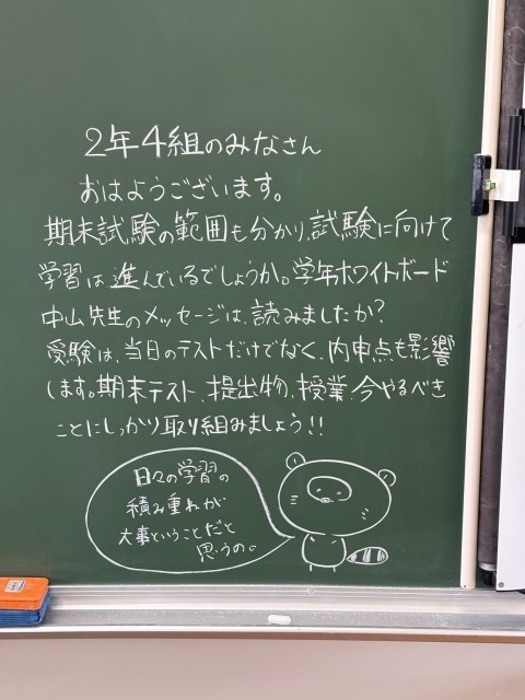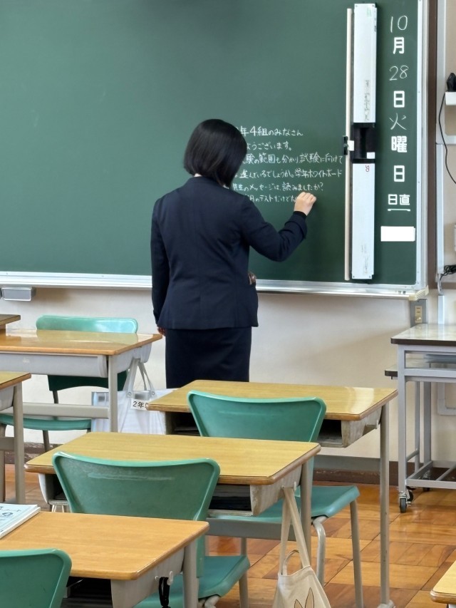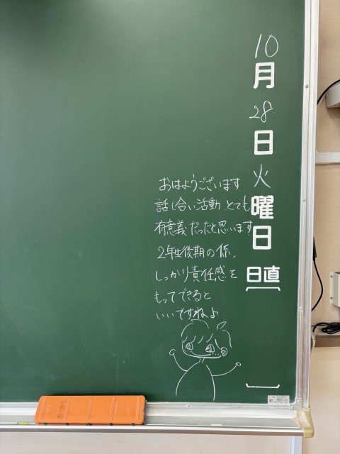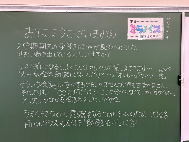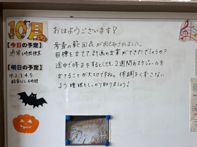 10月28日(火)の朝に校舎内を巡回していたら、学年主任や学級担任の先生からのメッセージが書いてありました。
