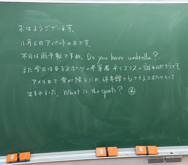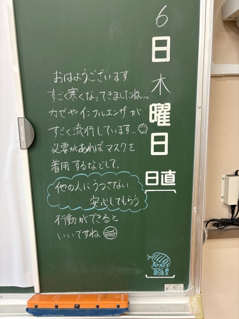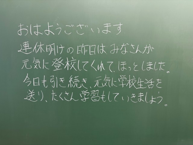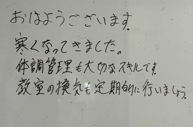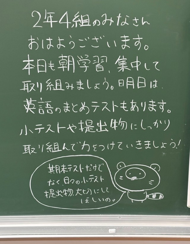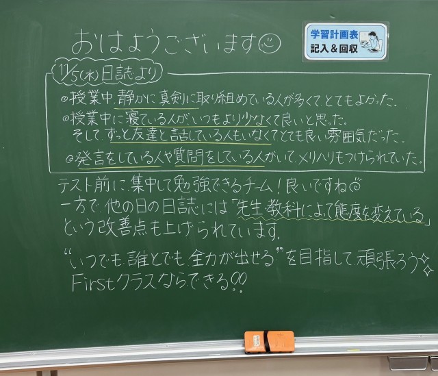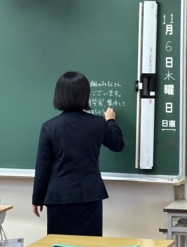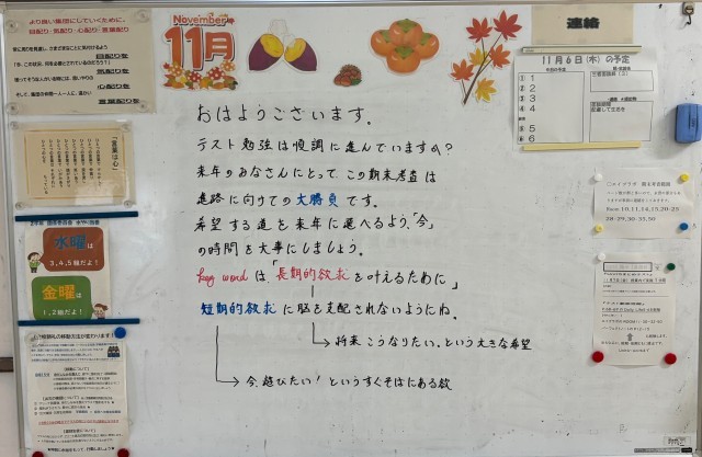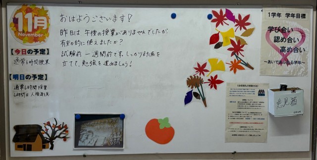 11月6日(木)の朝に校舎内を巡回していたら、学年主任や学級担任の先生からのメッセージが書いてありました。