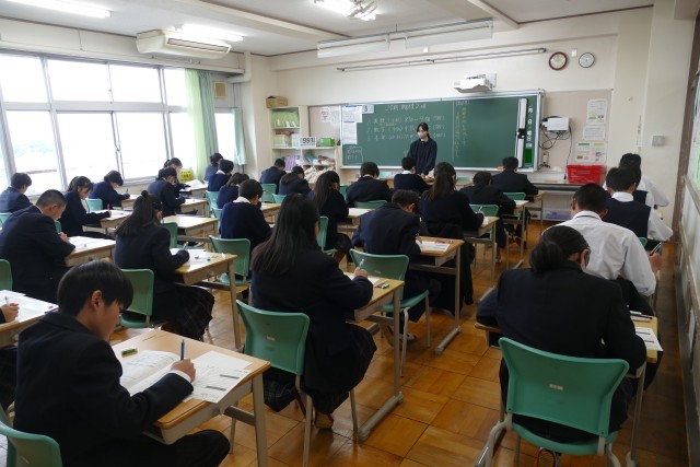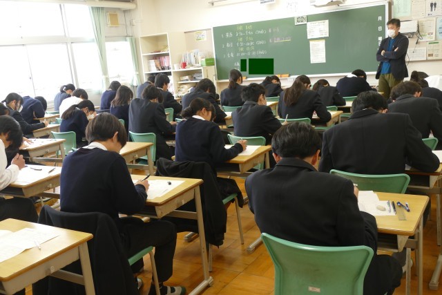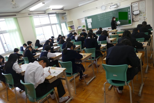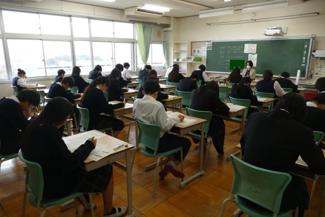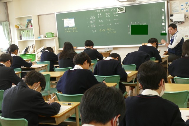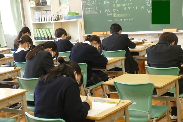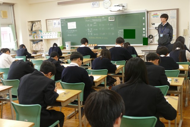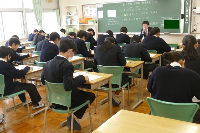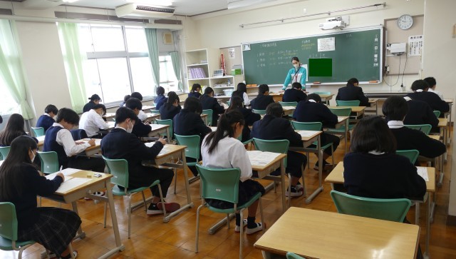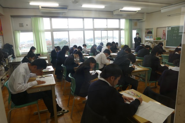 11月13日(木)、期末考査2日目です。1校時に英語、2校時に数学、3校時に音楽の試験が行われました。生徒のみなさんは集中して試験に取り組んでいました。がんばってください。応援しています。