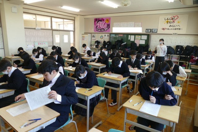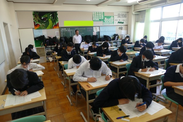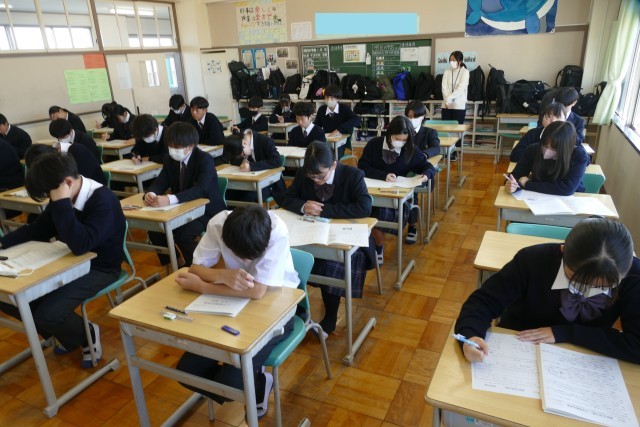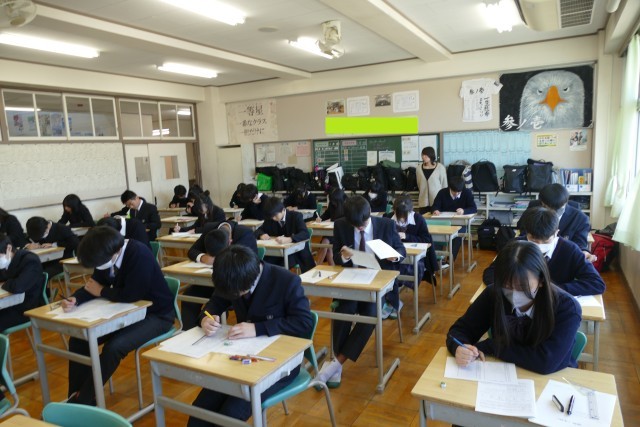 11月14日(金)、期末考査最終日です。1校時に理科、2校時に保健体育科、3校時に技術・家庭科の試験が行われました。生徒のみなさんは最終日も集中して試験に取り組んでいました。頑張ってください。応援しています。