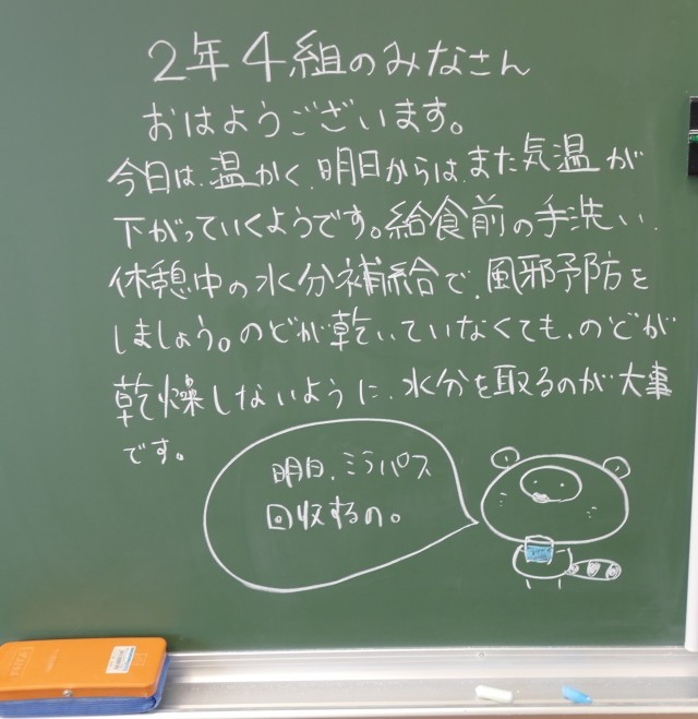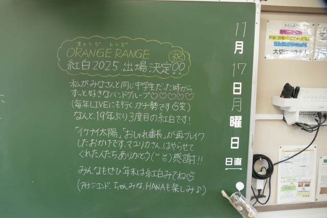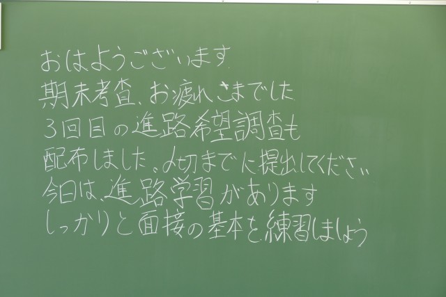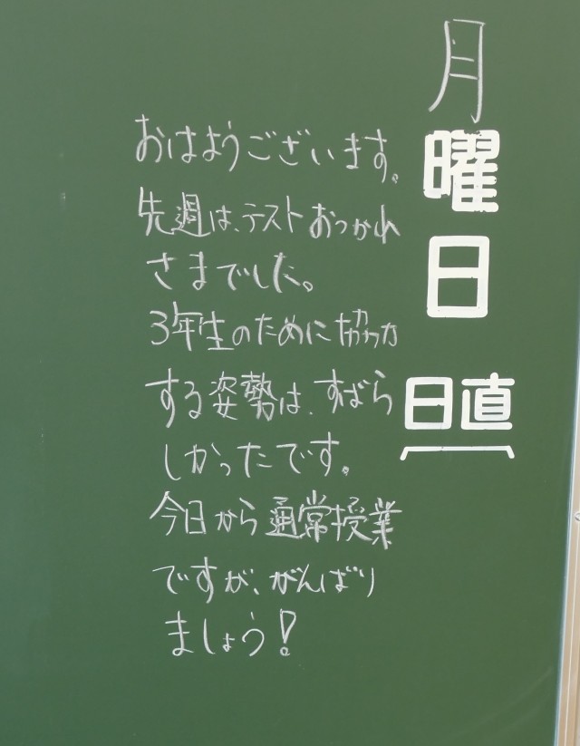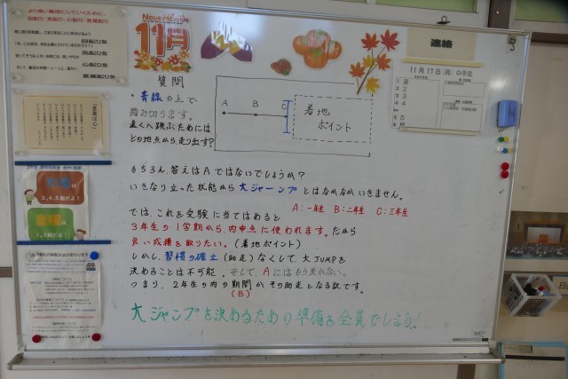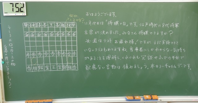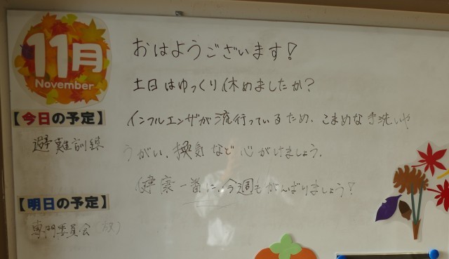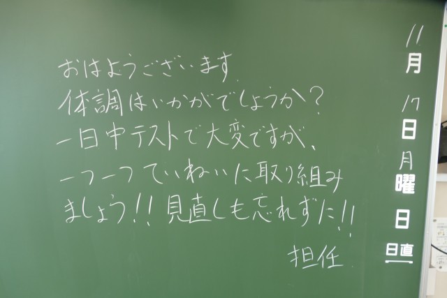 11月17日(月)の朝に校舎内を巡回していたら、学年主任や学級担任の先生からのメッセージが書いてありました。