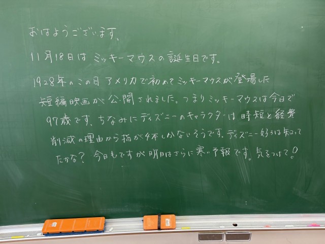 11月18日(火)学年主任や学級担任の先生からのメッセージ